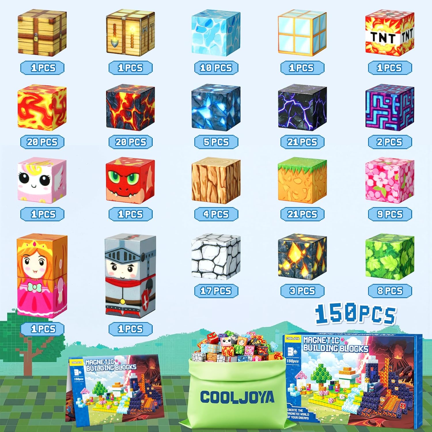 Magnetic Blocks-150 PCS Magnetic Building Blocks, Construction Toys for Montessori Halloween, STEM Sensory Toys.